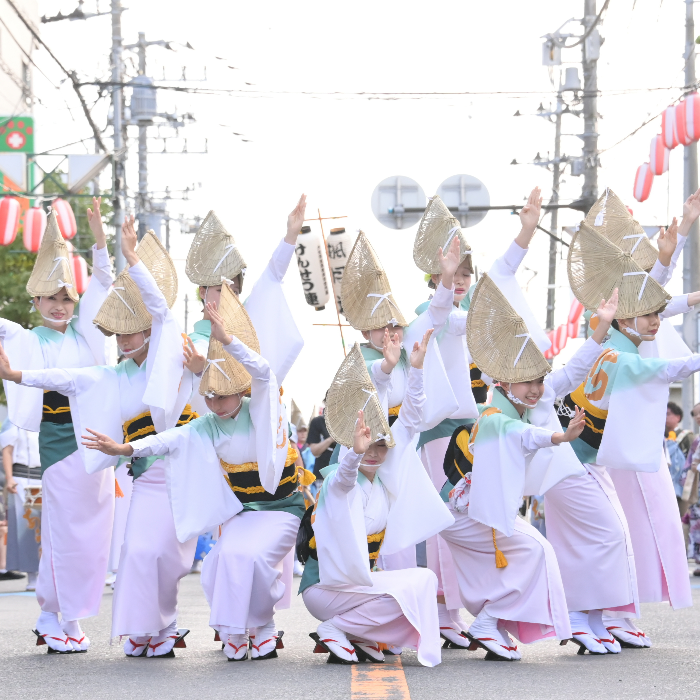 正調踊りを基調にうちわ踊りなどを踏まえたパフォーマンスを披露します。衣装は法被(はっぴ)を使用します。