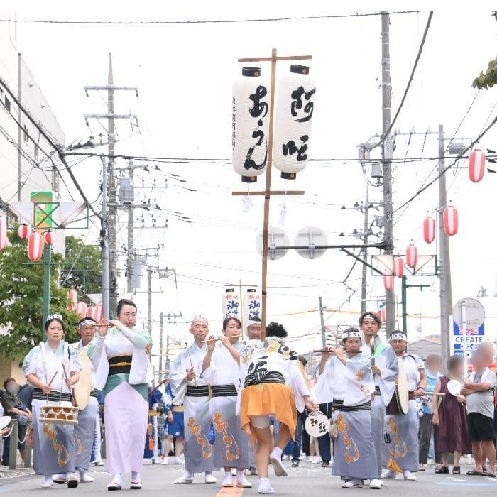 パートは鉦、締太鼓、大太鼓、笛、竹、鼓(つづみ)で構成されています。